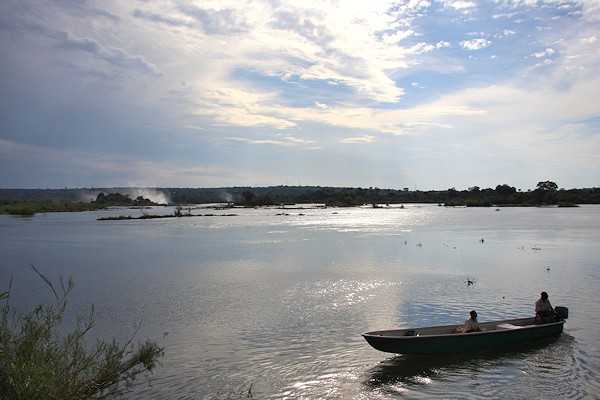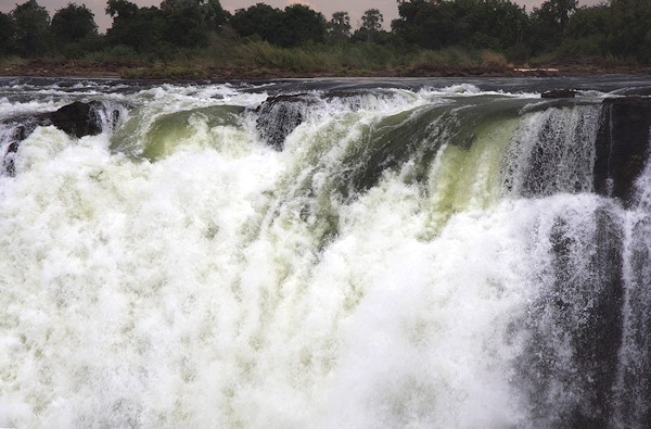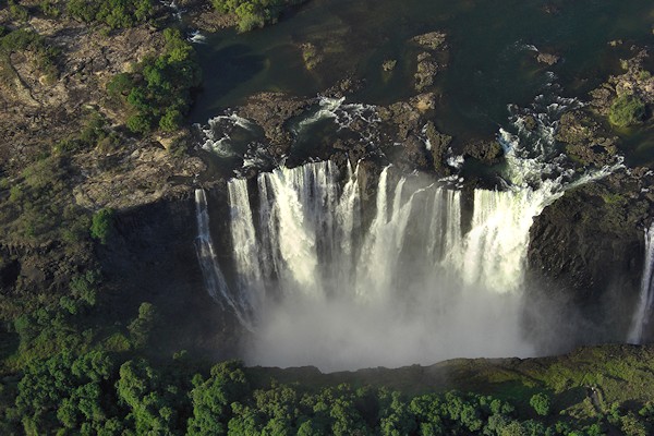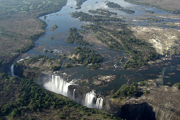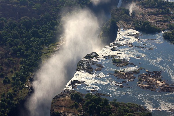 Victoria Falls, a spectacular waterfall more than one mile wide, lies the on Zambezi River at the border between Zambia and Zimbabwe. Its local name "Mosi-oa-Tunya", means the Smoke that Thunders referring to the huge cloud of spray thrown up from the falls.