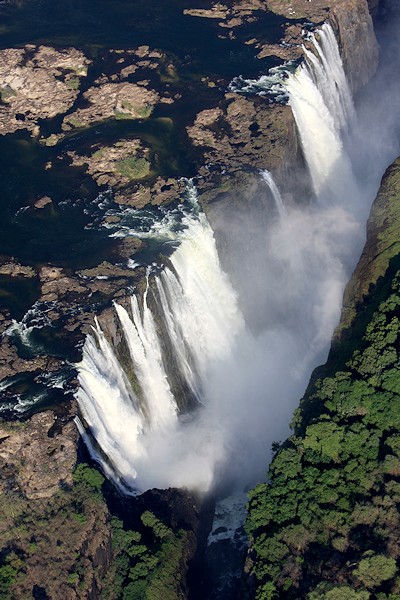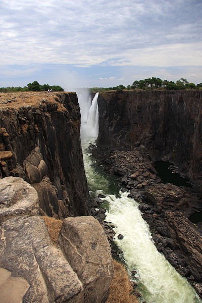 Victoria Falls is not the highest or widest waterfall in the world, but it is the largest sheet of water combining both the width and height. February to May the river is in full flood and during that time it is impossible to see the bottom of the falls and the spray reaches hundreds of metres into the air. For the remainder of the year, the falls are much more accessible. These photos were taken in November.