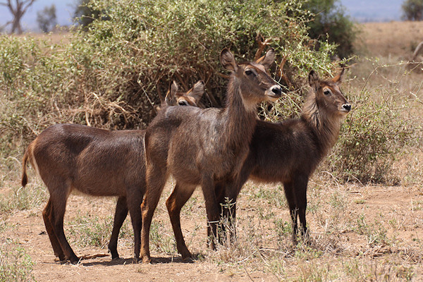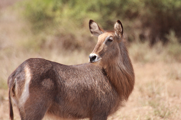 It can be distinguished from the Defassa Waterbuck by the white, horseshoe-shaped ring on its rump. The Defassa Waterbuck has a completely white rump. Only the males have horns which are tightly spiralled.