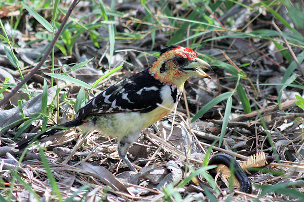 These photos were taken in the Okovango, Botswana and the Selous National Park, Tanzania. In the photo at bottom left, the barbet was playing with a Giant Millipede with a view to having lunch!