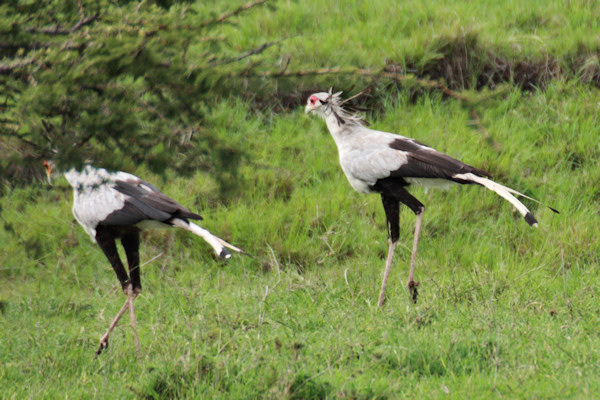 The Secretary Bird is a very large bird of prey, or raptor. It spends most of its time on the ground although it roosts on the top of thorn trees.
