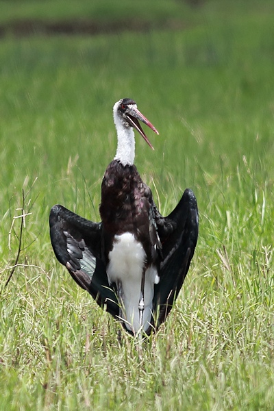 The Woolly-necked Stork, also called the White-necked Stork, is a large wading bird.